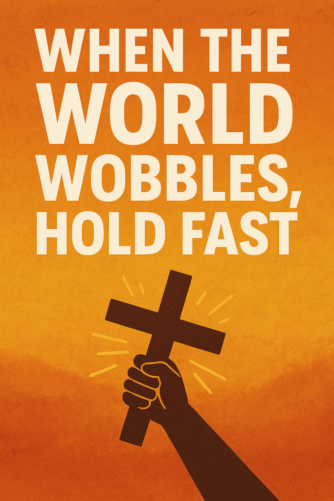 That’s our calling too. Not to stoke the flames of mistrust and fear, nor to escape uncertainty or hide away from it. Rather, when the world wobbles, we are to hold fast, to courageously stand, and even to walk amidst the storms.